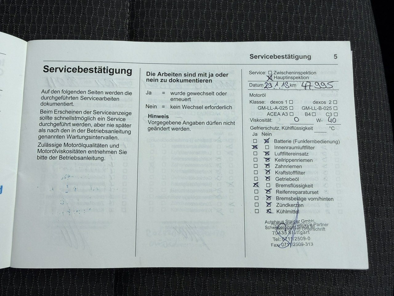 – Książka serwisowa